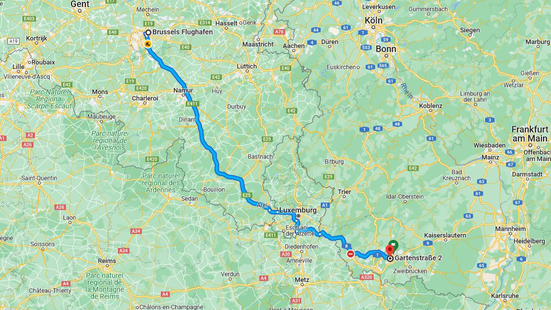 Brüssel Flughafen - Spiesen, Gartenstrasse - 3 h 18 min (322 km)