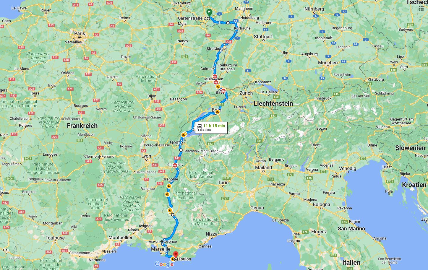 Spiesen Basel Genf Grenoble Toulon - 11 h 15 min (1033 km)